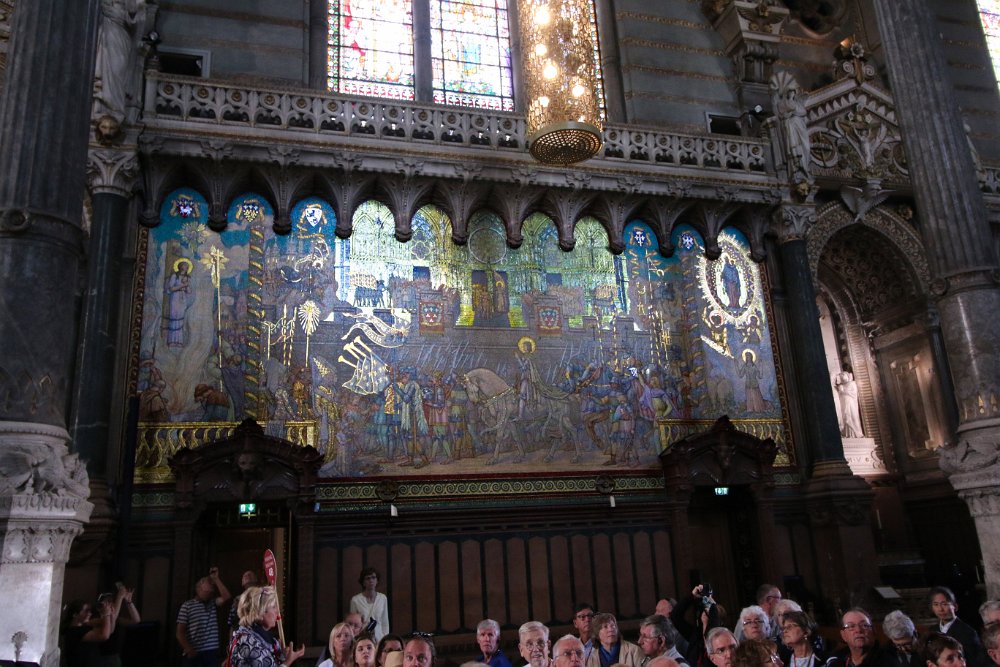 On the side walls are 6 large mosaics of 164 square feet, by Charles Lameire et Georges Décote, show, on the left, the link of Mary to the Church and on…