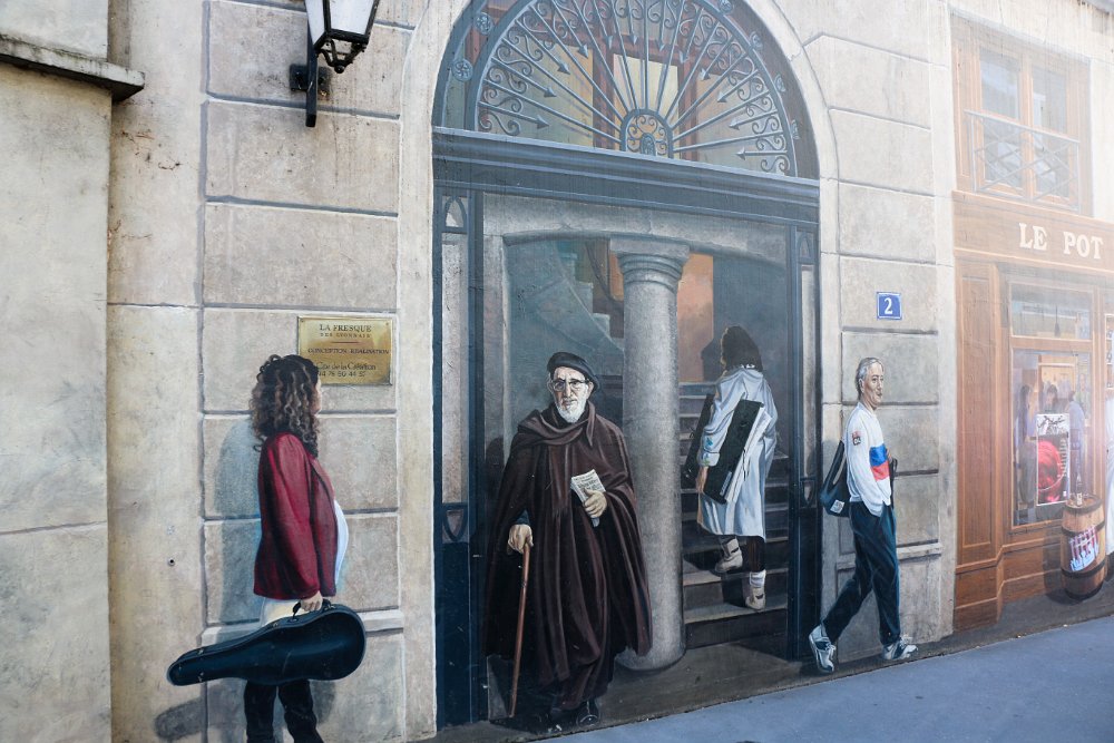 The La Fresque des Lyonnais captures the images of all of Lyon's most famous residents from ancient times to the present day and covers 8,600 square feet.