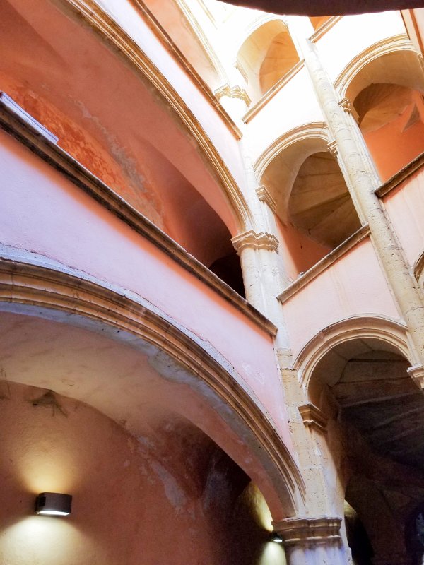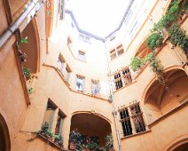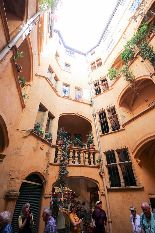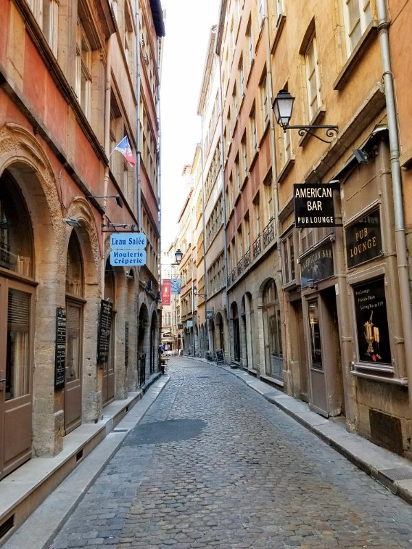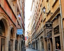 The Rue des 3 Maries in the heart of Vieux Lyon (Old Lyon), France and the Presqu'ile shopping district.