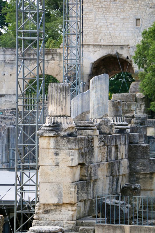 Of the rear wall of the stage only a few stumps of pillars and two more or less complete columns remain. Since the theater is now used again during the summer…