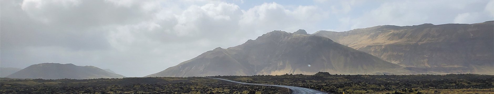Lava rock formations found on Route 54 on the Snæfellsnes peninsula with the volcanic mountains behind.