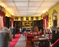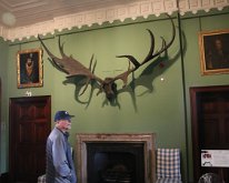 Corky admires a set of antlers in the Entrance Hall. There has been an entrance hall here at least since the 17th century rebuilding of the castle. The black…