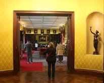 Debbie checks out the Entrance Hall. The room has been hanged with key portrait from the Butler family.